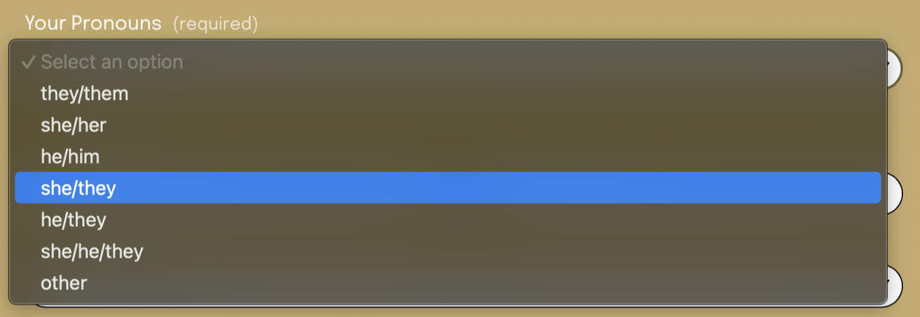I’d encourage you to take it a step further and include a tab for their pronouns. This detail may seem small, but it can have a big impact on making trans and non-binary people feel safer. As a non-binary person myself, I always appreciate intake forms that ask for my preferred pronouns. It simultaneously equips you with the information needed to best address them and makes them feel considered. It is a win, win!