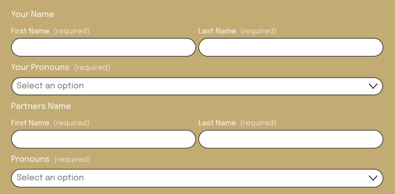 Now let me be clear by saying there is absolutely nothing wrong with these terms, especially if they suit the couple. However, as vendors we can make our website more inclusive by using more neutral terms that can fit couples of all kinds such as: